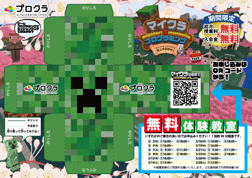 そろそろプログラミング教室を始めてみようかな?とお考えの方、4月からの進級に備えてぜひこの機会に無料体験にいらしてください!